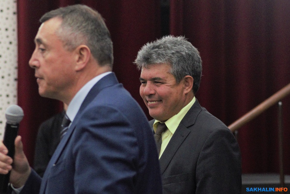 Валерий Лимаренко отметил, что вопрос на его контроле и власти города уже поставили там новый насос, но это решение временное — износ сетей слишком велик. Глава территории Дальнего Андрей Худорбаев добавил, что муниципалитет планирует к марту 2020 года проложить новый водопровод от северо-западного водозабора, и тут он оговорился: вместо микрорайона "Новый" он сказал "село" и вызвал крик из зала одного мужчины.