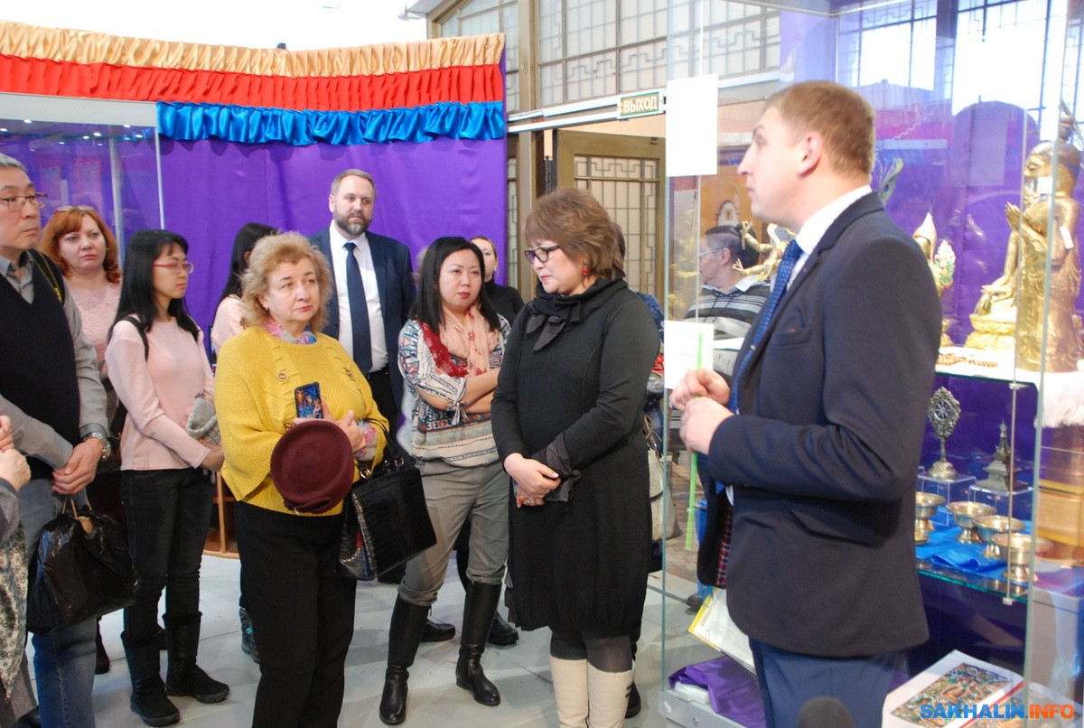 Гостей выставки приветствовали директор Сахалинского областного краеведческого музея Юрий Алин, представитель сахалинской региональной общественной организации "Бурятское землячество "Байкал" Ольга Цырендоржиева, участники бурятского национального коллектива "Ангара" (Дом культуры, Ключи).