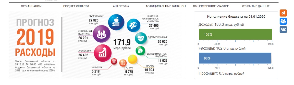 Закон о бюджете Сахалинской области на 2019 и плановый период 2020 и 2021 годов вносился в областную думу в — в конце 2018-го из-за губернаторской неопределенности в регионе сделать это смогли чуть ли не в последний возможный день. В первоначальной конфигурации его показатели были куда скромнее итоговых — доходы прогнозировались в размере 159, а расходы — 172 миллиарда рублей. Но в течение года основной финансовый документ пять раз корректировали — в результате доходы выросли приблизительно на 20,7, а расходы — на 13,7 миллиарда рублей.