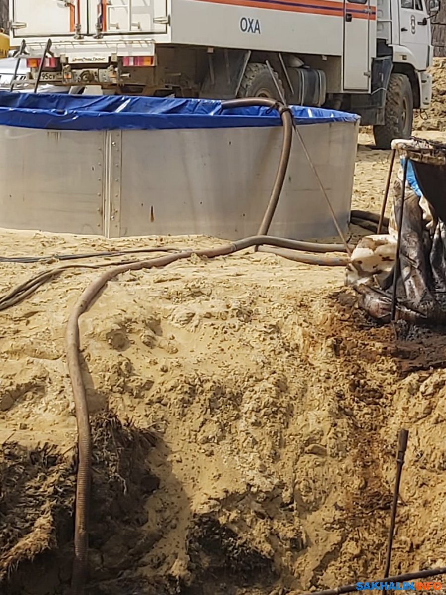 Как сообщил редакции ИА Sakh.com мэр Охи Сергей Гусев, вчера он был на месте разлива нефти. Люди работают над устранением ситуации, привлечена компания "Экоспас". Фотографии, которые размещены в новости, сделаны в апреле. Ситуация сейчас выглядит таким образом.