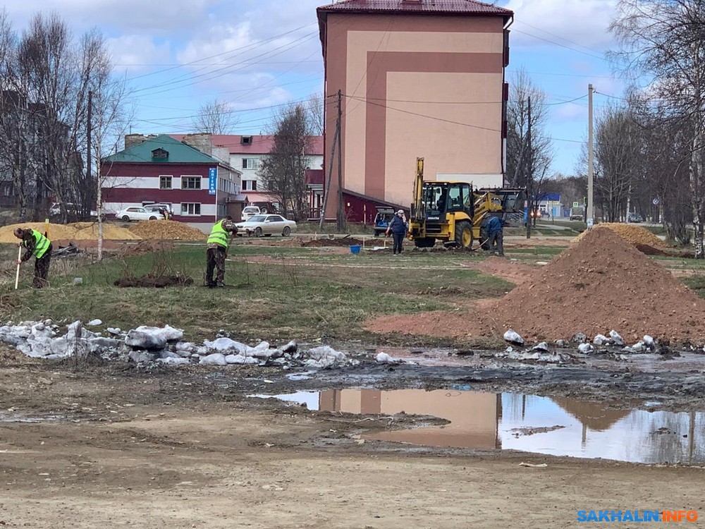 В Тымовском по второму кругу благоустраивают сквер за 10 миллионов