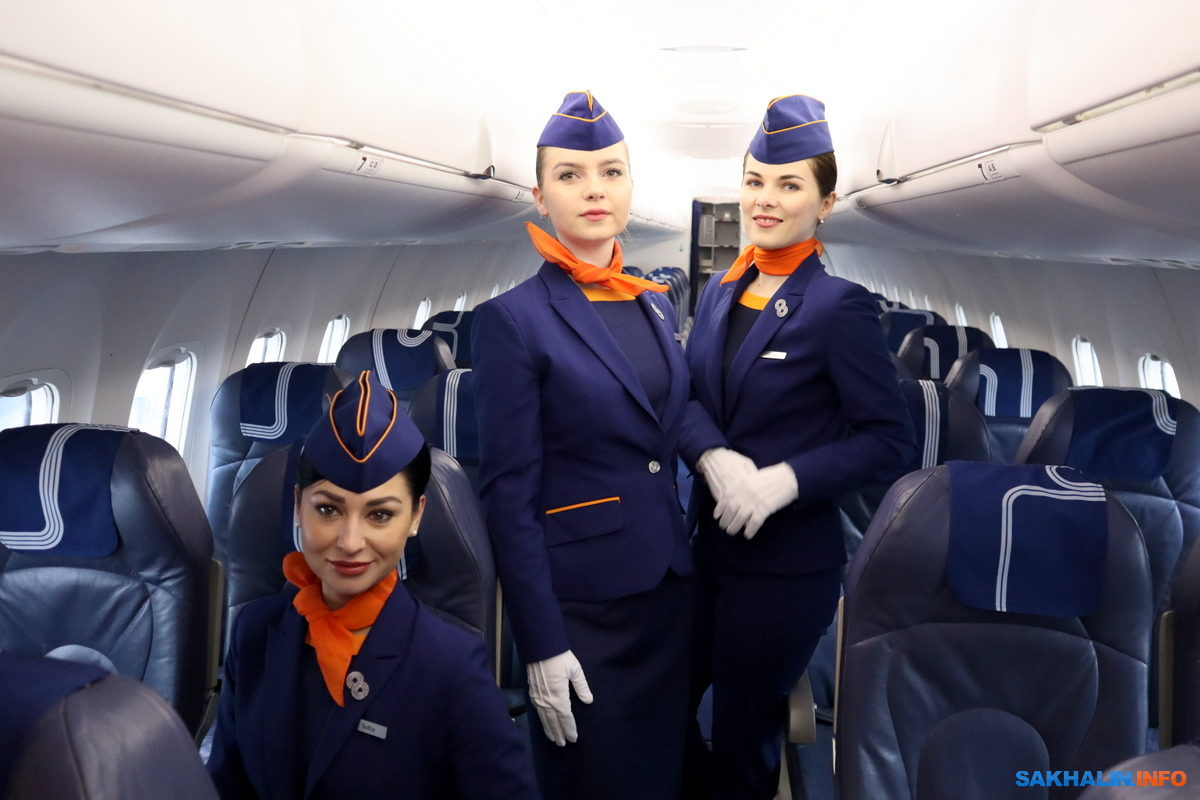 О женщинах в гражданской авиации Сах.ком . Сегодня гостей на аэродроме встречали три бортпроводницы: Марина Пожарницкая, София Пишевец и Кристина Лебедева. Признаются, что у них уже есть ощущение праздника, да и вообще оно не покидает их каждый день, несмотря на непростую, хоть и романтичную работу. А вот знакомого многим ощущения "завтра пятница" у девушек нет, их график слишком гибкий для таких условностей, и в этом они видят плюсы.