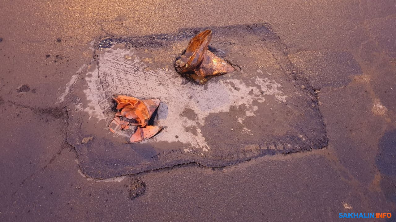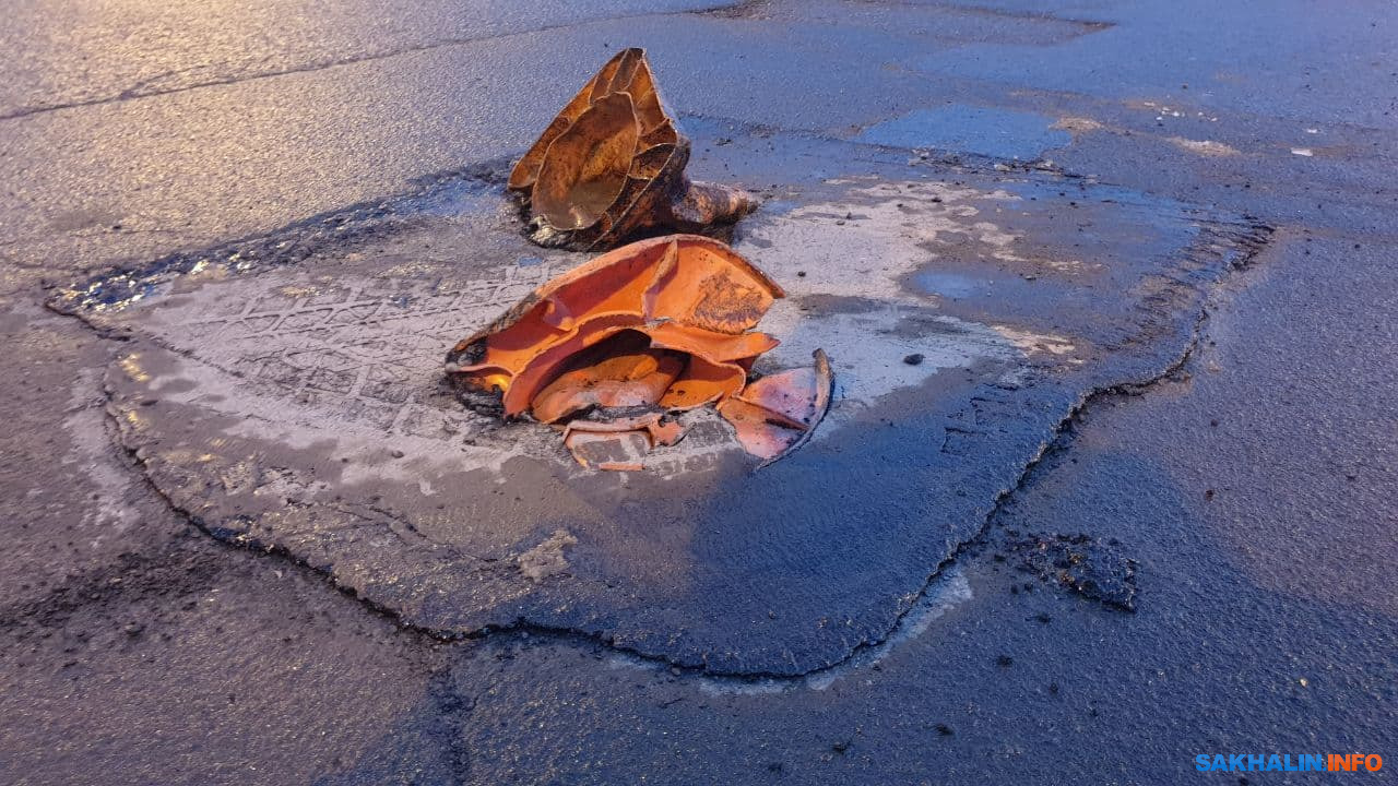Конусы пали жертвой ямочного ремонта на мини-кольце в Южно-Сахалинске