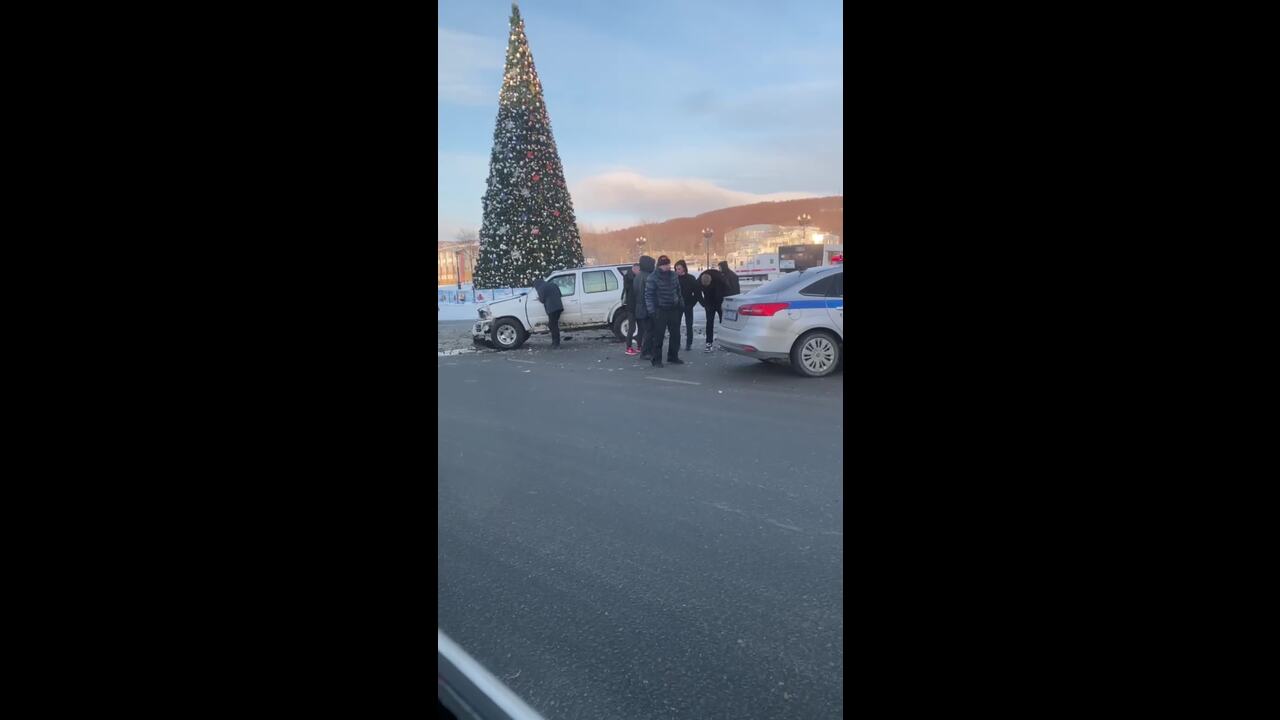 На площади Победы в Южно-Сахалинске произошло ДТП, участие в котором приняли внедорожник и легковой автомобиль.