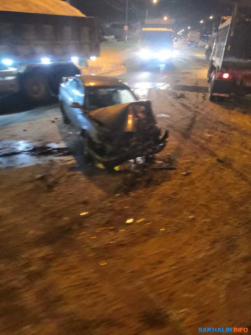 Ночью на улице Железнодорожной у въезда на снежный полигон произошла серьезная авария. Как сообщает соавтор Сах.ком, водитель легкового автомобиля врезался в самосвал. По данным соавтора, сахалинец был пьян, его впоследствии госпитализировали.