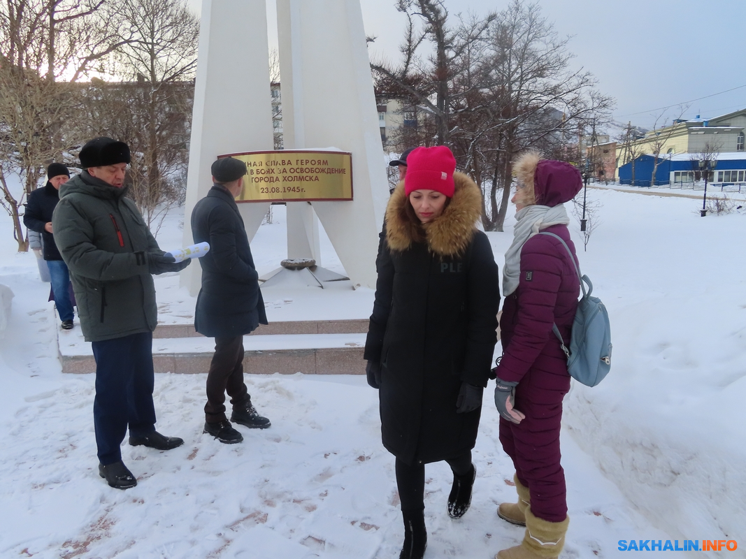 В Холмске, помимо уже описанного выше, делегация посетила памятник Ленину и место, где в 1870 году высадился поручик В. Т. Фирсов и десять солдат 4-го Восточно-Сибирского линейного батальона. На каждый из этих объектов никто из администрации не отказался бы принять в дар денег, это не скрывалось, а даже подчеркивалось.