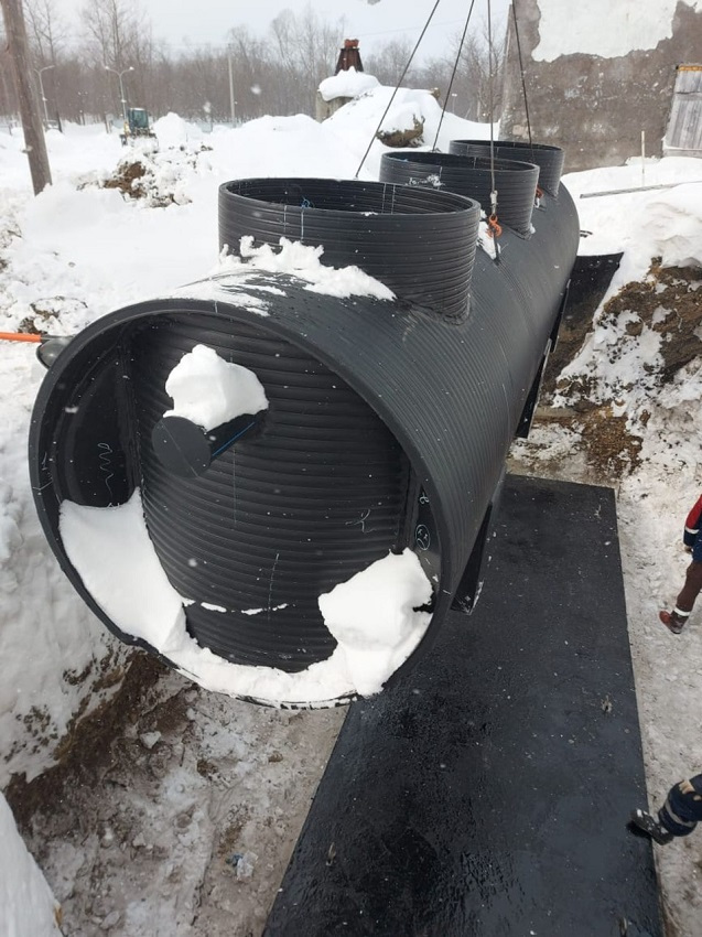 В Чехове Холмского района завершается строительство очистных сооружений на водозаборе. Строители приступили к монтажу емкостей резервуара чистой воды на новом объекте, строительство которого реализуется в рамках федерального проекта "Чистая вода". Запуск очистных сооружений позволит сделать воду, поступающую людям, чище и безопаснее за счет более тщательной фильтрации и предварительной подготовки.