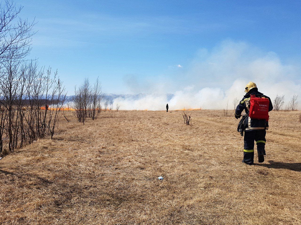 2 тысячи квадратов сухой травы горело вечером в Углегорском районе