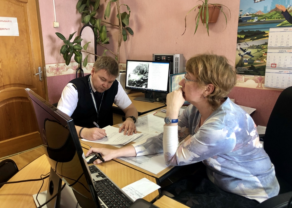 — Наша организация — "Авиационный метеорологический центр" — относится к Хабаровскому филиалу Росгидромета. Наш авиационный центр — самый основной на островах. Мы отвечаем за прогнозы не только в аэропорту "Южно-Сахалинск", но и за "погоду" на приписных аэродромах: Курильских островов, "Шахтерск", "Ноглики" и "Оха". В коллективе трудятся 29 человек, служба состоит из пяти групп: административной, группы связи, метеорологической — сюда входят техники-наблюдатели, которые у нас находятся на полосе, где расположен основной пункт наблюдения. Также к службе относится оперативная синоптическая группа и техническая группа, которая состоит из инженеров-электроников и инженеров по эксплуатации гидрометеорологических приборов. Одни отвечают за оргтехнику и линии связи, а другие следят за исправностью специального оборудования, которое мы ежедневно используем для составления прогнозов и сводок.