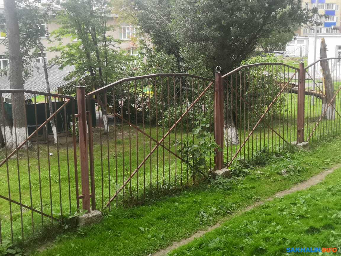 Ветер повалил деревья на территории южно-сахалинского детского сада