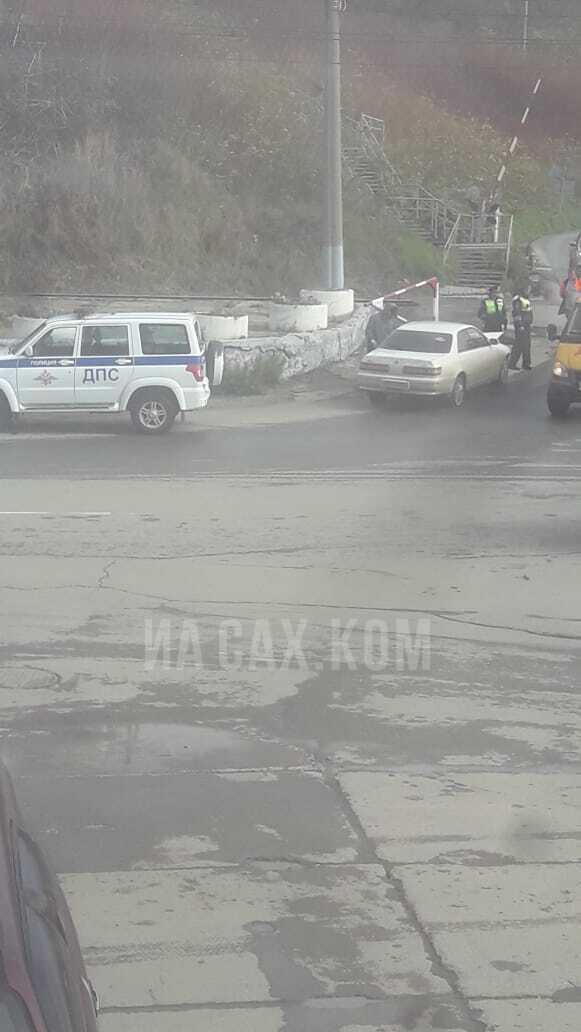 Сегодня в третьем часу дня на въезде в Холмск произошло ДТП. Как сообщает соавтор агентства, водитель автомобиля Toyota Mark II решил проскочить через закрытый железнодорожный переезд, но у него это не получилось. Водитель не справился с управлением, перелетел через ж/д пути и в итоге разбил переднюю часть автомобиля: замялся капот и сломался бампер.