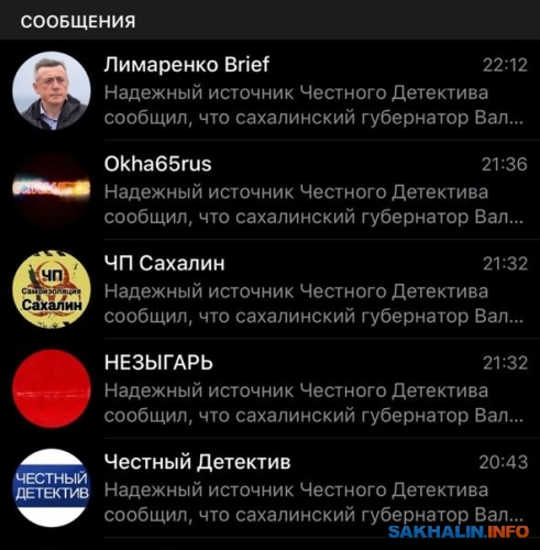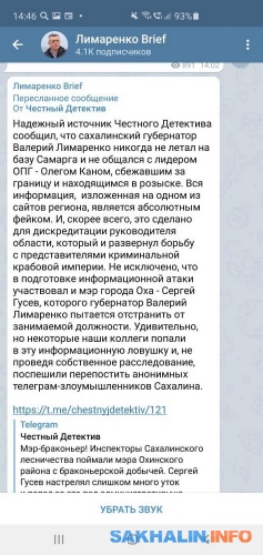 Как видно из представленного скрина, этот пост тут же взял к себе и официальный телеграм-канал Валерия Лимаренко "Лимаренко Brief". Автор уверена, что информация была подготовлена не без помощи пиар-службы губернатора. Фактически газету обвинили во лжи, сказав, что Лимаренко на Самарге никогда не был. Рядом "вскрылись" еще несколько каналов, перепостивших сообщение "Честного детектива" почти одновременно.