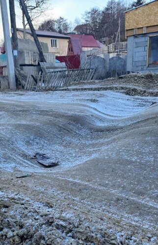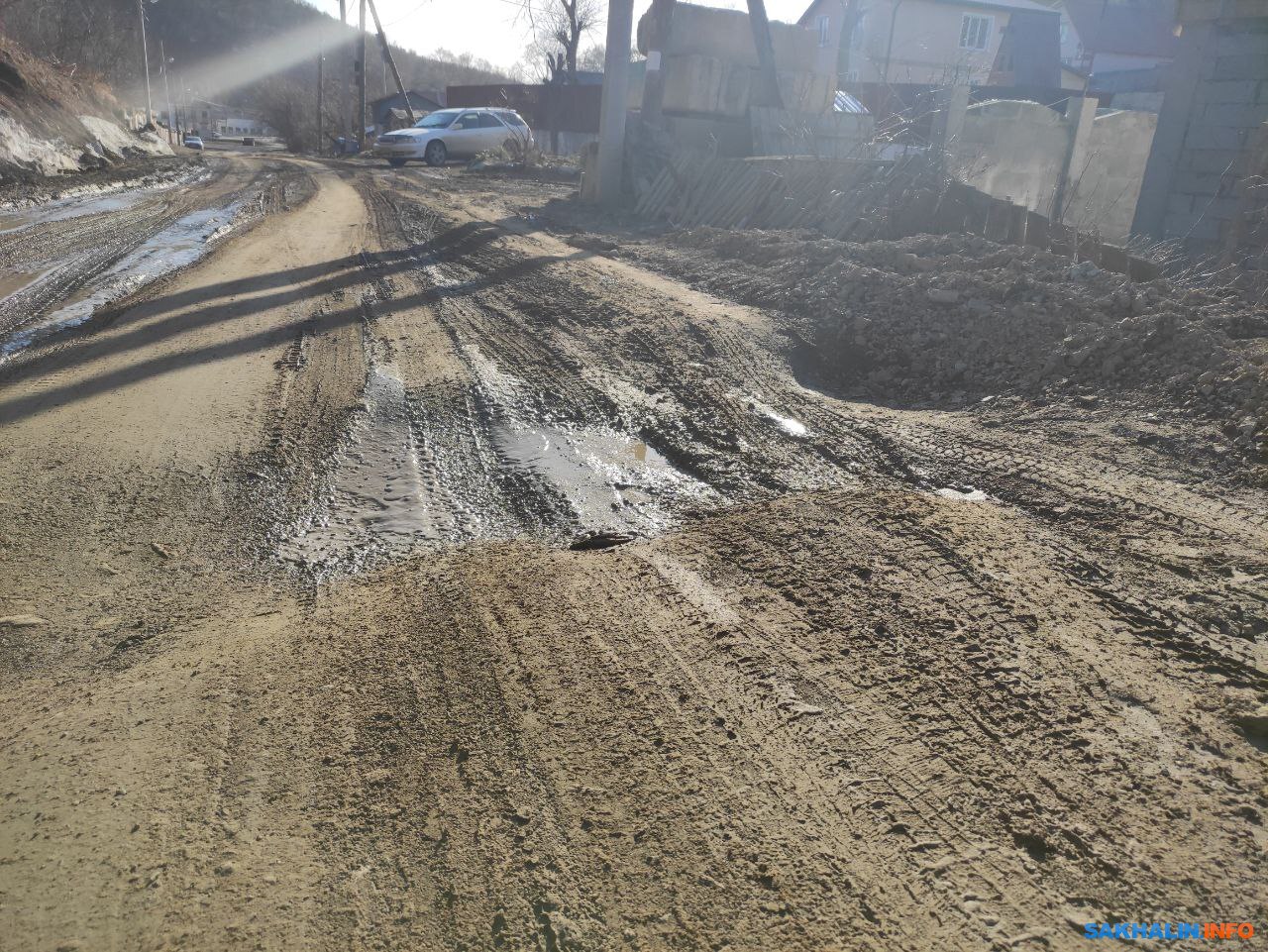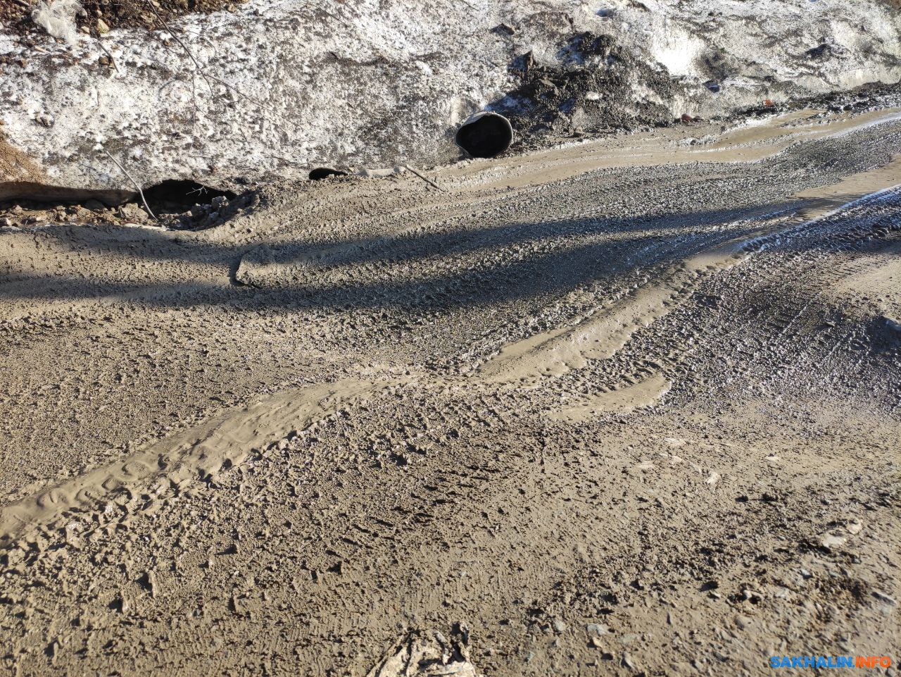При беглом взгляде на окрестности создаётся ощущение, что дорогу просто подмыло, тем более она расположена в частном секторе. Однако в мэрии Корсакова опровергают эту версию. Как сообщили ИА Сах.ком специалисты, состояние дороги — результат работы газовиков.