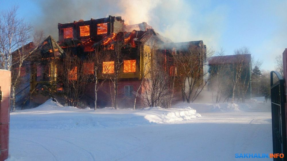 Сегодня рано утром в селе Охотском Корсаковского района произошел пожар на базе отдыха, принадлежащей сахалинскому региону ДВЖД (входит в структуру ОАО "РЖД"). Судя по фотографиям очевидцев, деревянное здание выгорело практически полностью — огнем повреждены четыре этажа, кровля. Предварительной причиной возгорания сейчас считается замыкание проводки.