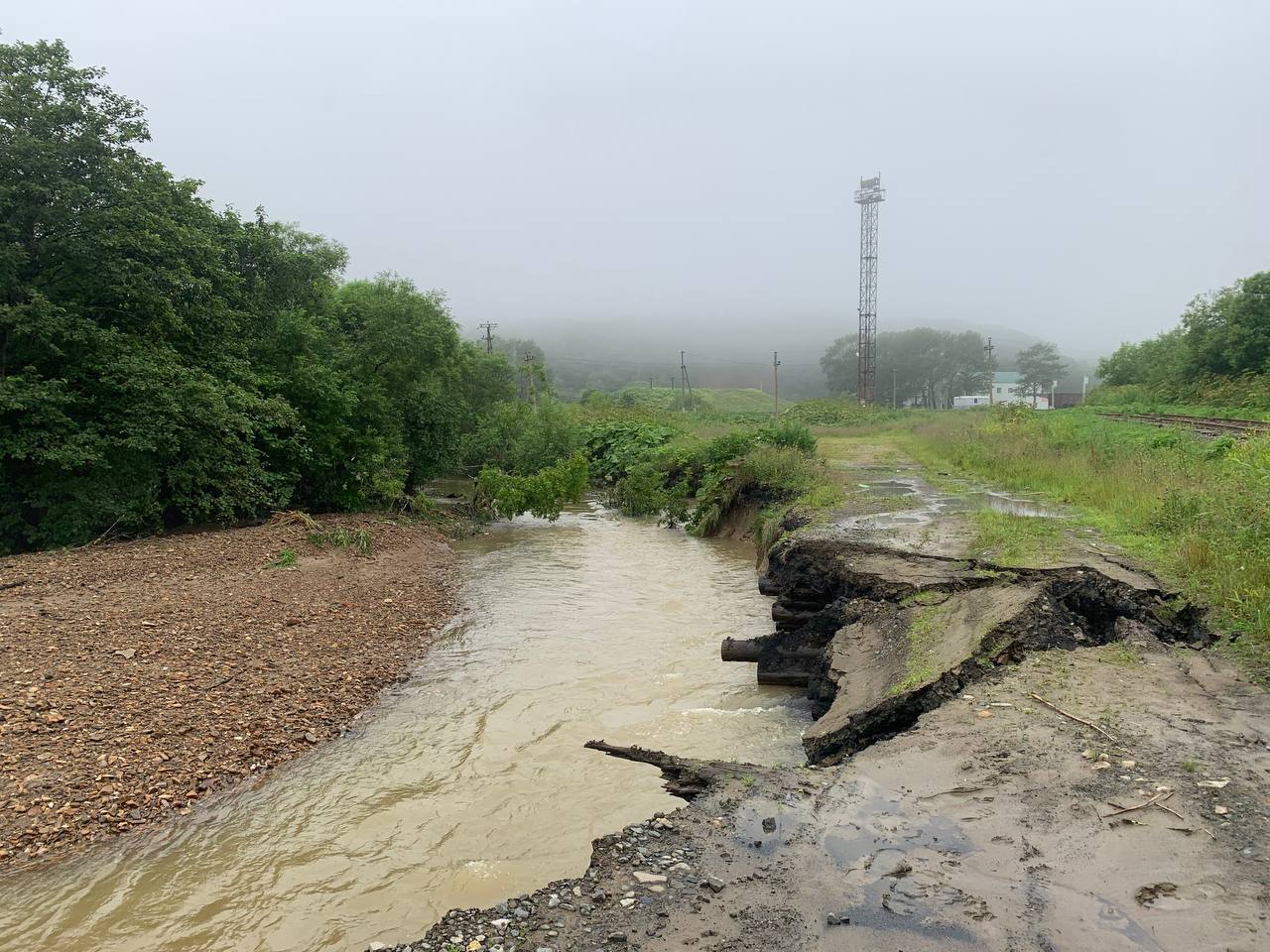 В селе произошел разлив реки Красной, и земельный участок на улице Заречной, 1 затопило. Также непогода , который ведет к участку. Но у семьи есть выход в поселок через железнодорожные пути.