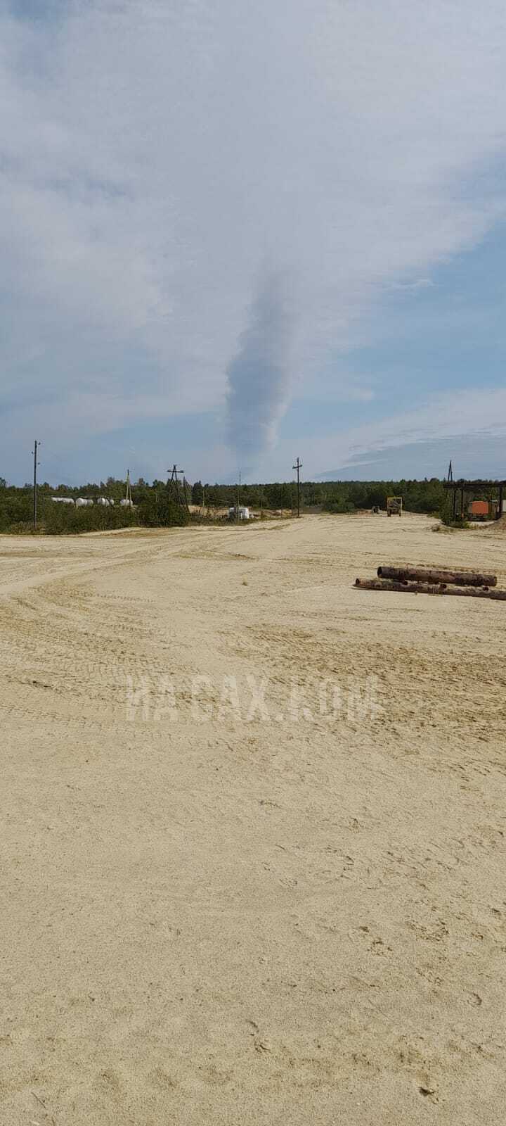 Интересное явление имело место сегодня на северо-востоке Сахалина около половины второго пополудни. Облако в виде смерча поднималось над лесом к небу. По словам соавтора, приславшего в редакцию фото, он наблюдал это явление, находясь в районе нефтяного месторождения Мухто, а сам "смерч" был, судя по всему, над акваторией залива Пильтун в Охинском районе.
