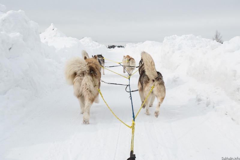 — Пять штук (смеется). Да нет, шучу, двадцать пять. Две собачки — это Ивана Вячеславовича и его жены Евгении. Они врачи, живут в Корсакове, постоянно приезжают, помогают мне с собаками, тренируют их. Экстремалы молодые. Три года уже мы сотрудничаем. Вот сейчас будем составлять полноценную упряжку. Мне хочется, чтобы народ увидел, что вообще представляет собой настоящая упряжка. Можно восемь собак поставить, а можно и десять, но представьте — десять маламутов, они полтонны утянут. В будущем мы планируем туризмом заниматься, людей катать. Весной буду переезжать в другое место — в село Новое недалеко от Корсакова. Там мне землю выделяют, буду строить полноценный питомник, каким он должен быть. Только вот помощники нужны, чтобы развивать этот вид спорта и отдыха для туристов. Спрос есть, предложений много — это же адреналин. Кто-то любит на снегоходах кататься, кто-то на квадроциклах. А за собачьей упряжкой не ехать же на Аляску. Надо, чтобы у нас все на месте было, свое. Я на Камчатку ездил, смотрел, как там ездовой спорт развивается. А перед Новым годом летал в Оху, в поселок Некрасовка.