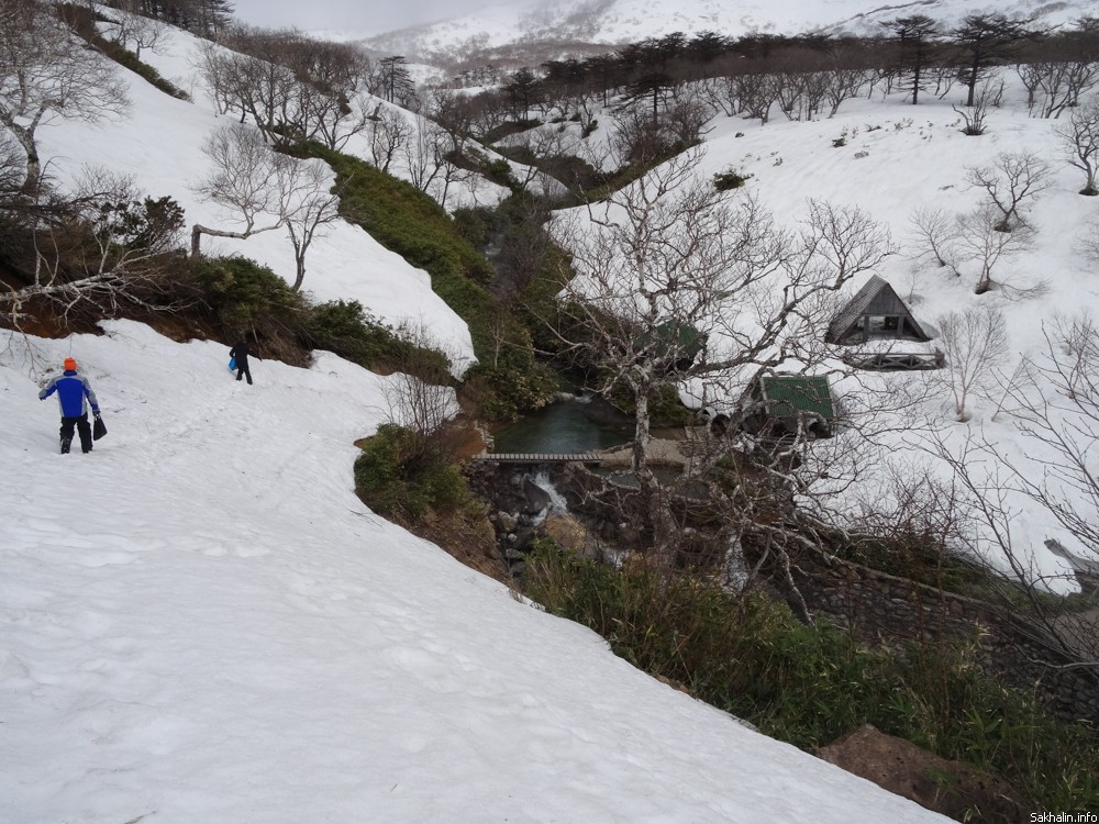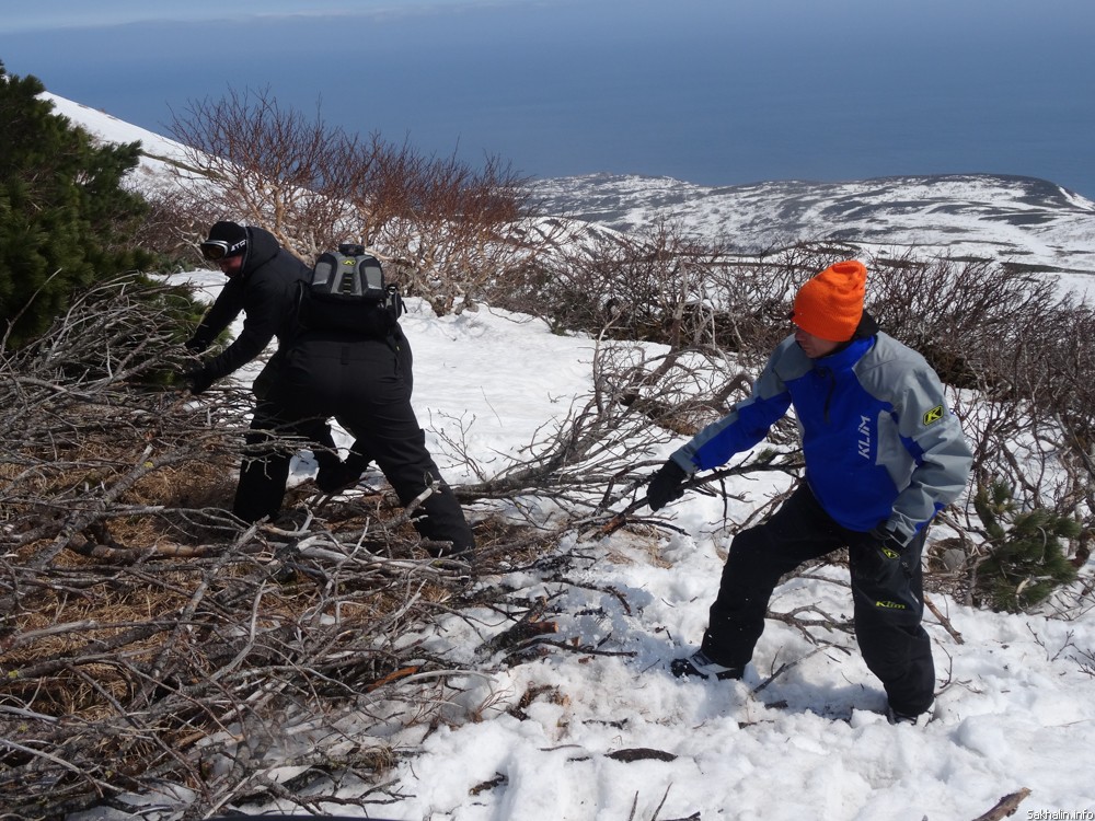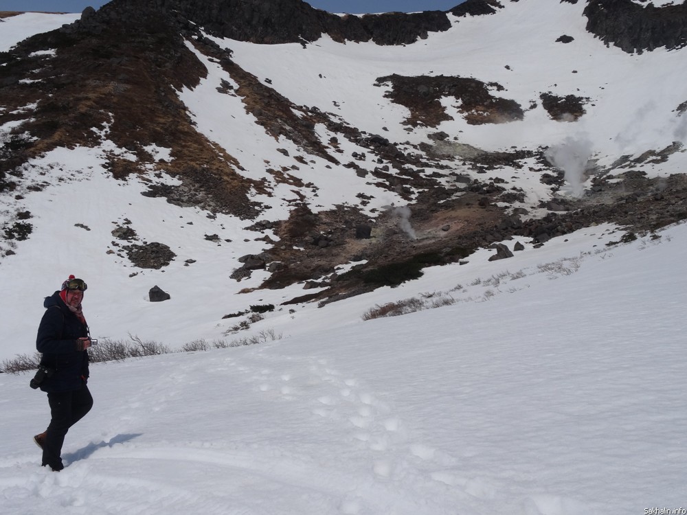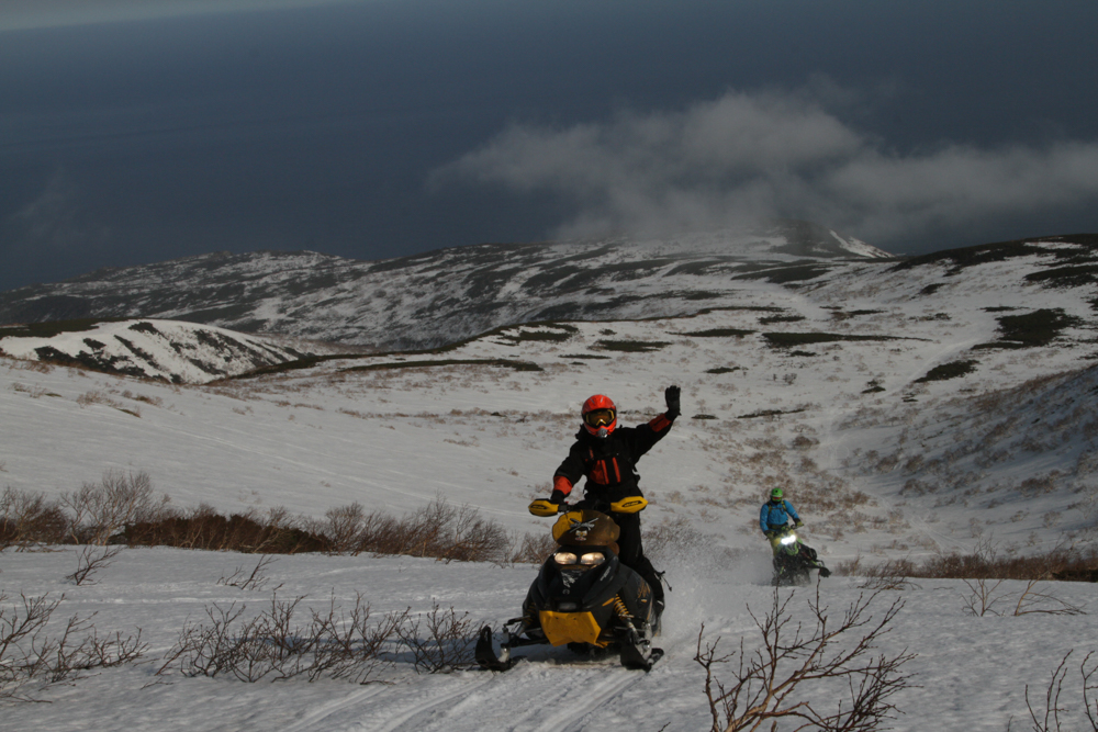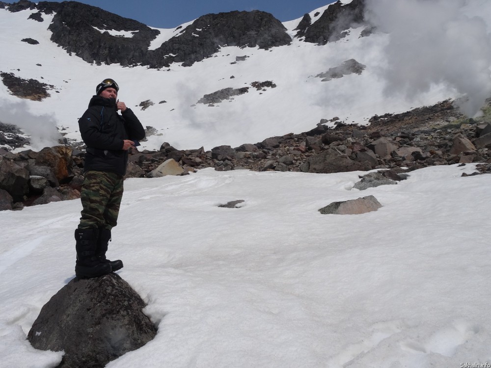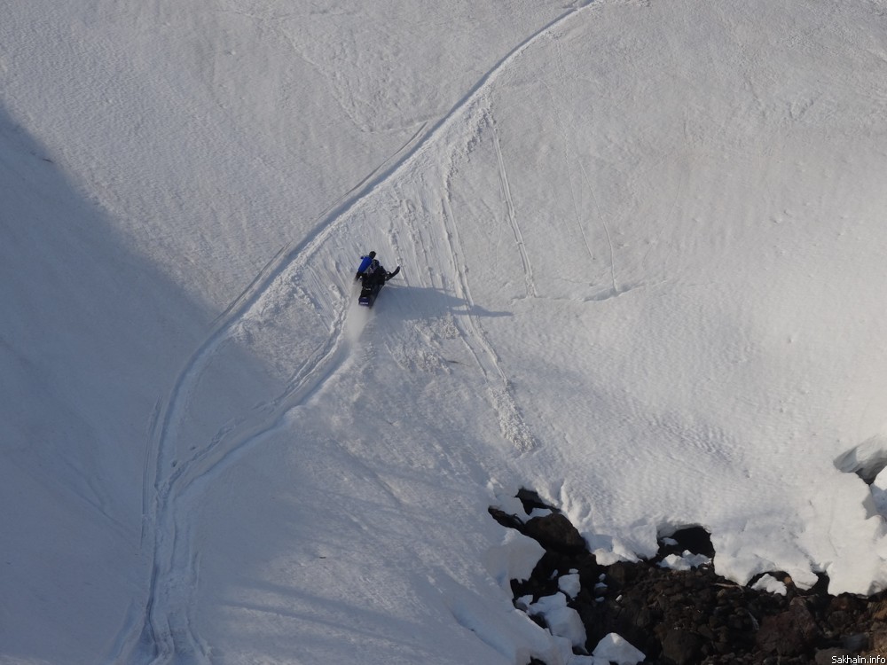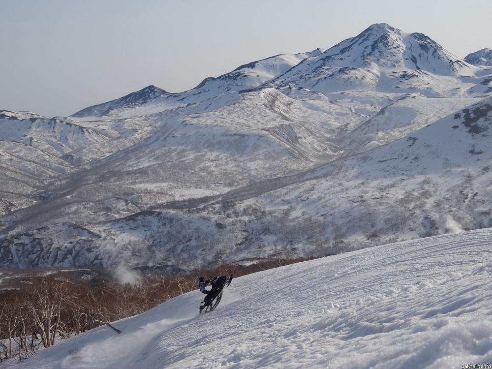 — Маленький курильский кусочек Камчатки, — с гордостью говорят наши провожатые. — Мы тут и на сноубордах катаемся. Подъемников, конечно, нет, на снегоходах добираемся. Зато какой фрирайд!