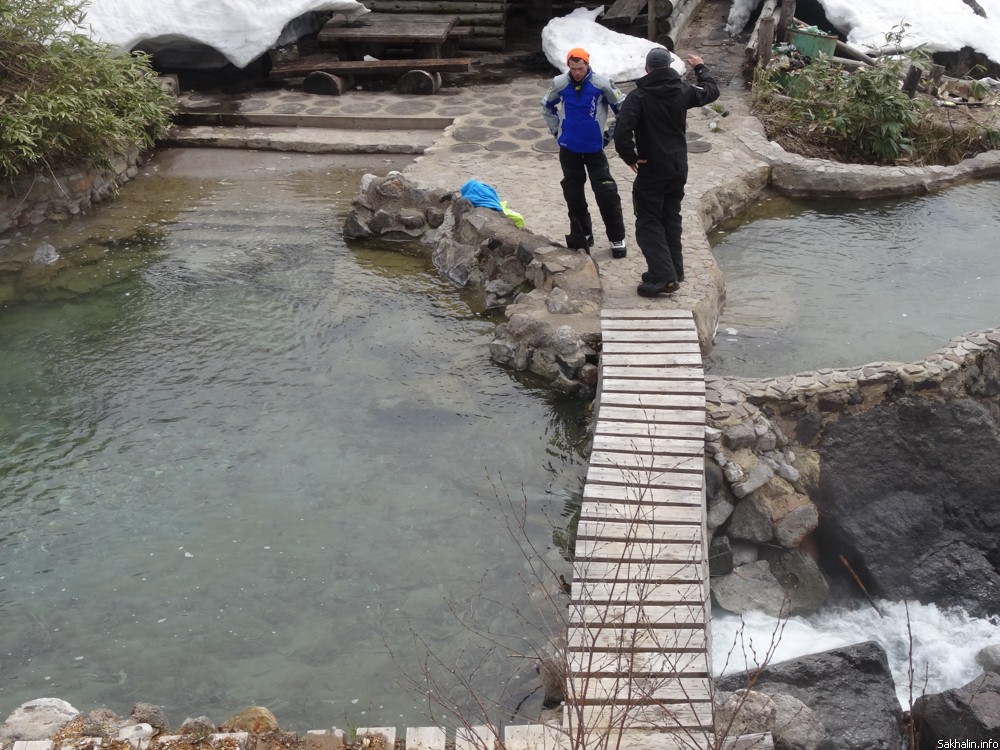 Опускаю руку в одну из ванночек, выложенных камнями, и понимаю — курильчане немного избалованы. Вода не просто комфортная, а горячая!