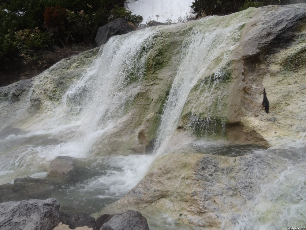 — А вон там — водопад, — показывает Павел вниз по течению. — Стоишь под ним — массаж обалденный. И полезно. Люди специально ездят сюда суставы полечить, а мне просто приятно купаться. Здесь, на Баранском три источника: вот этот, потом на первом тумане, рядом с фумарольным полем, и еще один есть — геологи для себя разведывали. Это такой тайный источник, о нем мало кто знает.