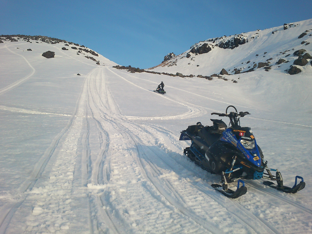 Самое неприятное — неизвестность. Маленький художник-паникер, живущий внутри, предательски начинает подкидывать воображению страшные рисунки. Стараешься не думать о плохом, но чем больше проходит времени, тем хуже получается. Дело в том, что в здешней идеальной тишине рев снегохода разносится на многие километры, мы бы хоть что-то слышали, но все трое словно без вести пропали, став пленниками вулкана, который хмурится и глядит на нас свысока.