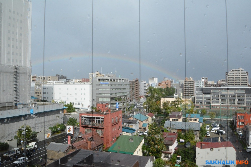 6 октября. За окном гостиницы дождь и радуга. Осенние краски на Хоккайдо пока ещё не столь выразительны, как на Сахалине.