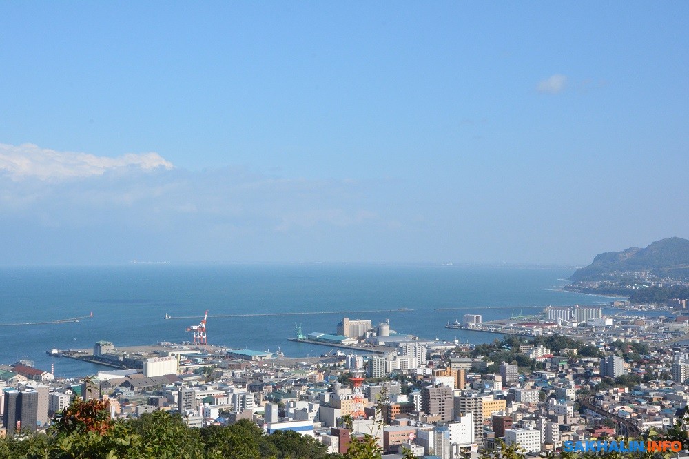 Менее заселенную часть города на горных склонах называют Сака-но-мачи или "Горный город", включая холмы Фунамизака и Йикогусака. Поднимаемся на один из них. Свежий ветер. С двух сторон от асфальтированной дороги раскинулся дубняк. На дорожное полотно скатываются желуди. С вершины холма открывается отличный вид на Японское море.