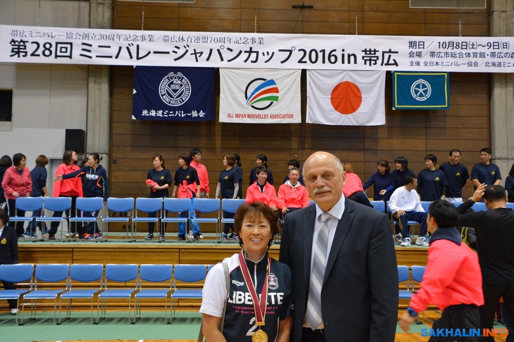 Хидетоши Кодзима в приподнятом настроении. В холле спортивного комплекса развернута выставка по истории международных отношений Всеяпонской ассоциации мини-волейбола. Большое место уделено спортивным связям с Сахалином, ставшим в 2002 году стартовой площадкой для развития мини-волейбола в российских регионах.