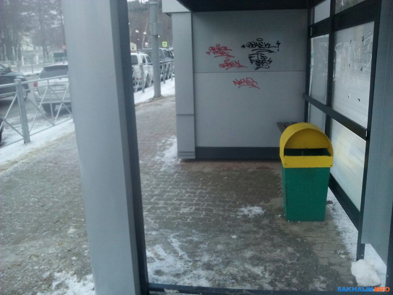 Отсюда и видимые проблемы. Спустя пару месяцев после несения молчаливой вахты киоски стали пестрить вмятинами, надписями, сколами и царапинами. Вряд ли "раны" павильонам нанесли обиженные любители периодики, оставленные без привычных точек продажи. Скорее всего это мерзнущие на остановках горожане в ожидании автобусов отрабатывали разнообразные движения. Возможно, если бы в киосках горел свет и шла торговля, итог был бы чуть-чуть другим. Бесхозность расслабляет. К тому же неясно, как поведут себя остановки зимой. Есть вполне логичные опасения, что тонкие пластиковые стенки при сахалинском ветре и снеге если и смогут защищать от погодных особенностей, то очень недолго. До первого серьезного порыва.