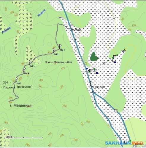 В конце ноября 2016 года в Западно-Сахалинских горах выпало снега гораздо больше, чем в окрестностях областного центра. Мои знакомые, прихватив кто лыжи, кто снегоступы, в это время отправились в северную часть Анивского района. Если двигаться от Южно-Сахалинска по трассе на Холмск, за поворотом на село Высокое вдоль неё будет большая площадка. В свою очередь, ещё в 2 км к северо-западу от той площадки, и в 400 м перед мостом через реку Каменку, от трассы на запад пойдёт старая лесовозная дорога: вначале около вершин гор Пушкина (не путать с горой Пушкинской, самой высокой вершиной Сусунайского хребта) и Медвежьей, а далее завалена буреломом, но когда-то приводившая в окрестности Высокого.