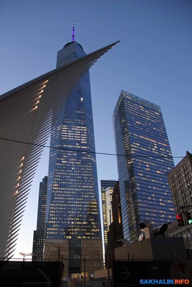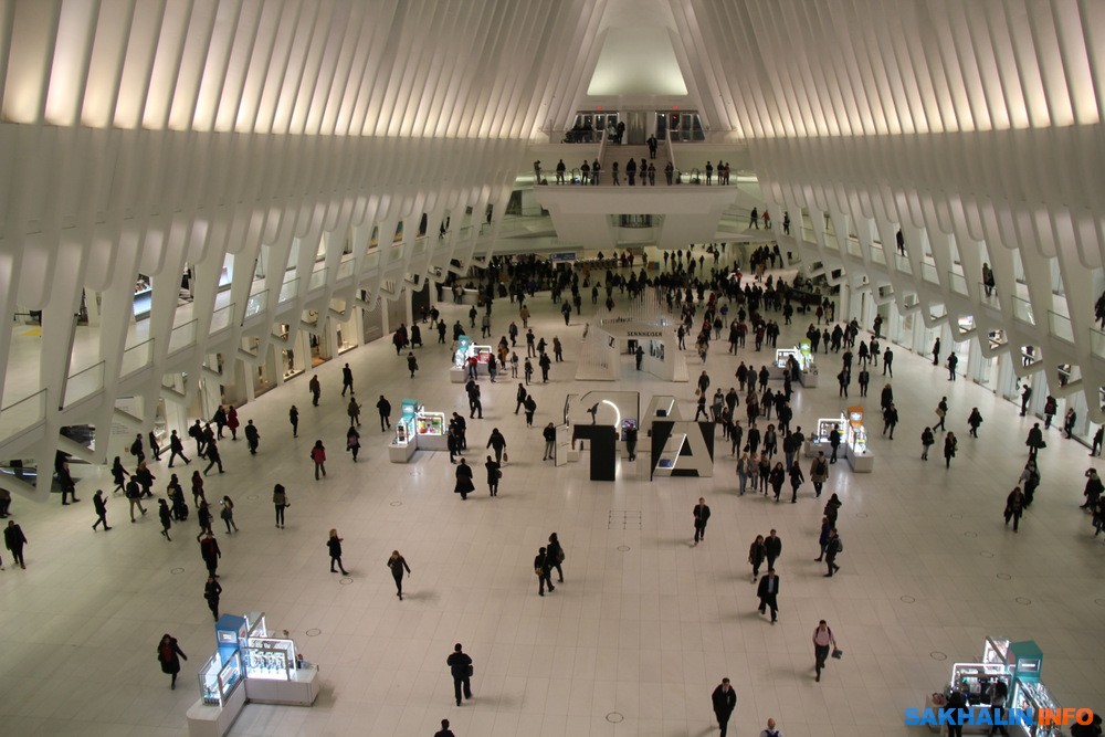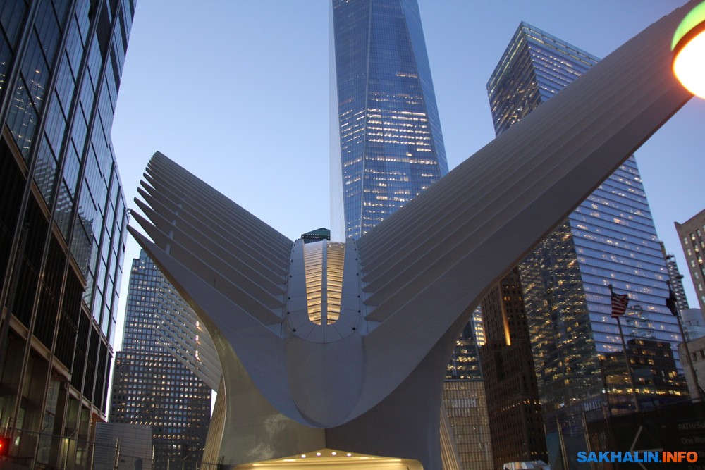 Рядом расположена, как говорят, самая дорогая станция метро в мире — комплекс Oculus, придуманный и спроектированный испанским художником-футуристом. Смета на стройку превысила первоначальную в два раза и составила около 4 миллиардов долларов, сроки возведения выросли с 5 до 12 лет. В шикарную белоснежную птицу входишь, как в музей. Но внутри вместо экспонатов — бутики дорогих мировых брендов, включая Apple. Там своя тусовка. Кажется, что люди пришли только послушать музыку или посмотреть кино с помощью модных гаджетов и не собираются ничего покупать.