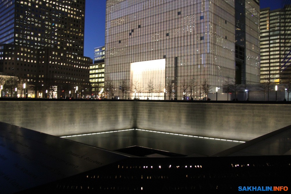 Это район мемориала, возведенного в память о жертвах теракта 11 сентября 2001 года. Прошло уже 16 лет... Намного чище, чем в тех местах, где мы были раньше, но находиться здесь непросто. Место, несмотря на его полнейшее преобразование, будет вечно помнить страшную трагедию. Шум воды гигантских водопадов, спадающей в каньон построенных вместо башен "бассейнов", усиливает тревогу. Бездонная дыра в центре резервуара, куда уходит вода, символизирует бездну, которая поглотила тысячи человеческих жизней. На бронзовой окантовке мемориальных бассейнов можно увидеть имена погибших, в том числе ста россиян. Туристам рассказывают о выжившем во время теракта дубе и церкви святого Павла 1766 года постройки, которая также устояла после разрушения башен-близнецов.