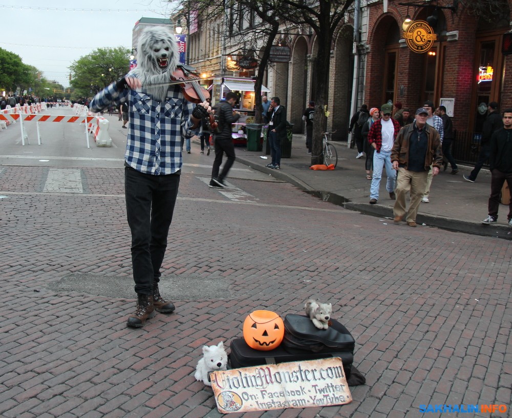 Шумно в зале? Концерт на улице. Есть вольные музыканты, есть нищие, заделавшиеся под таковых с какой-нибудь дудочкой и собакой. Я уже писала, что американцы любят собак, и под собак (для собак) готовы охотнее давать деньги бродягам.