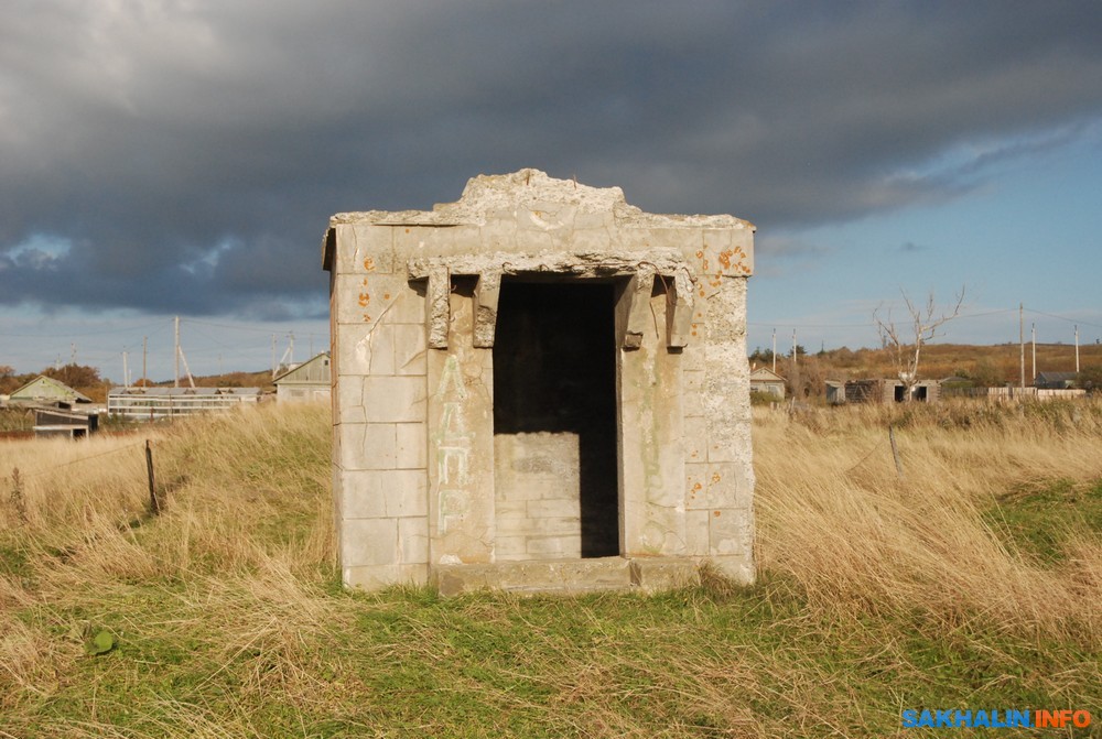 Путешествуя по городам и весям южного Сахалина, туристы время от времени наталкиваются на сооружения из бетона, похожие на автобусные павильоны. Одно из таких сооружений находится во дворе Сахалинского областного краеведческого музея.