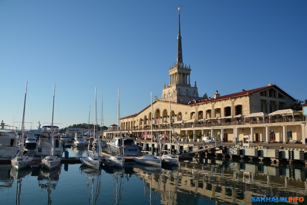 Рядом с центральной набережной города морской вокзал Сочи — одно из самых популярных мест у туристов и жителей курорта. Здание построено в 1955 году. В центре увенчано башней со шпилем. Над каждым из трех её ярусов установлены скульптурные фигуры, олицетворяющие четыре времени года и четыре стороны света.