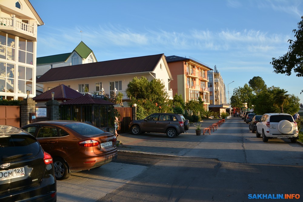 На повороте к гостевому дому, где я собираюсь остановиться, шашлычный дворик. Несколько молодых людей за прилавком — из горцев — приветствуют приезжих, приглашая отведать жареное мясо и вино. Мне достается одноместный номер с кондиционером и душем за 2000 рублей. В сезон цена номера подрастет. Оплачиваю сразу за пять суток. В стоимость входит завтрак на веранде третьего этажа здания. Имеется кухня, где самому можно приготовить еду. Вокруг множество разновысоких домов. В некоторых из них встроены гаражи с открытыми проемами.