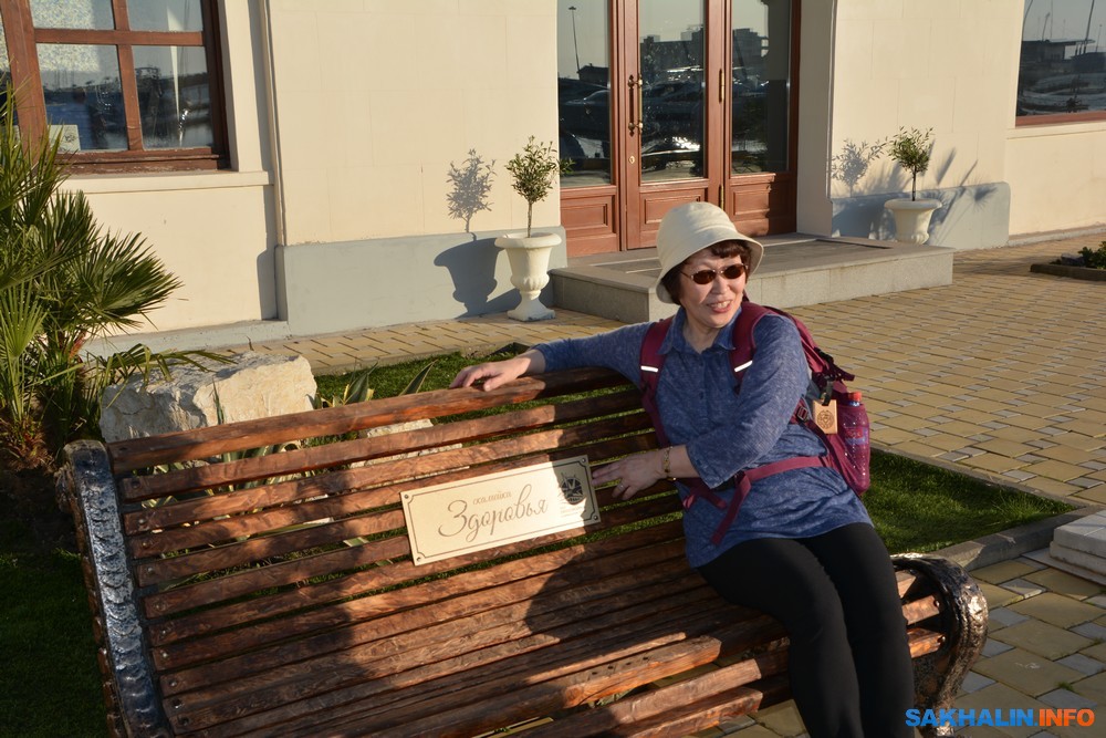 Пассажирские причалы способны принимать суда длиной до 220 метров. Тут же "скамейка здоровья" с видом на гавань. С неё удобно наблюдать за заходящим среди корабельных мачт солнцем.