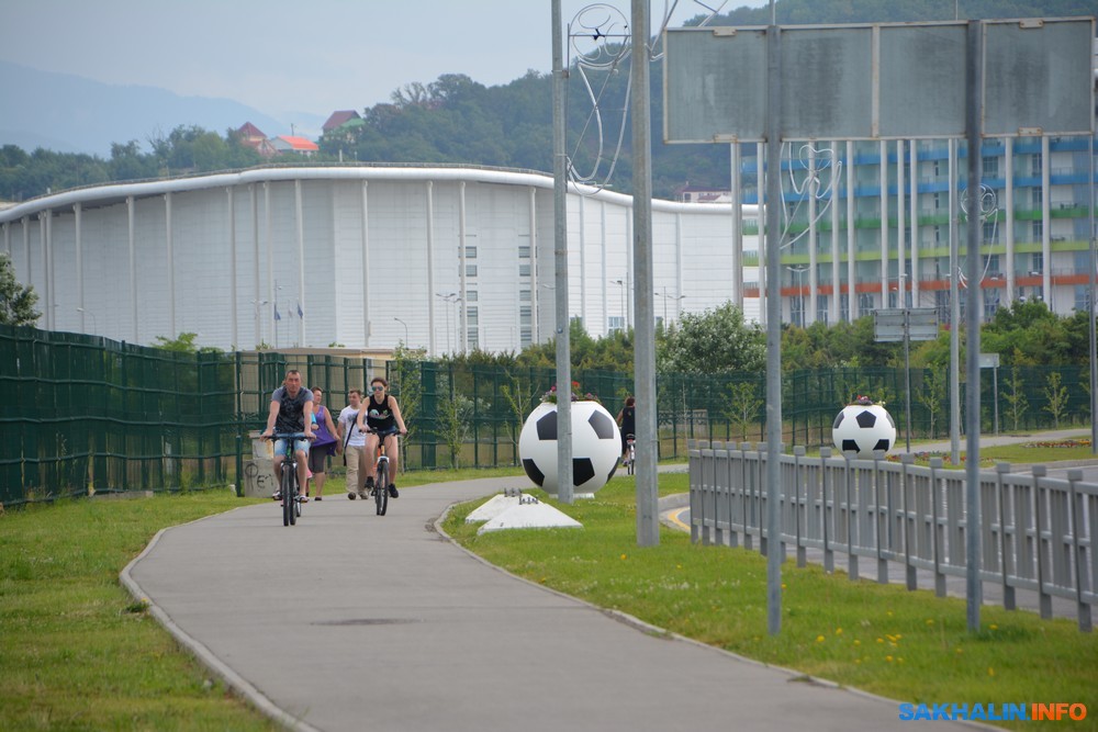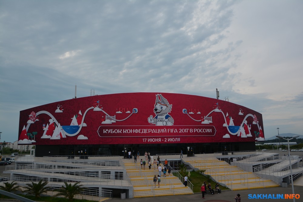 По сторонам автодорог вазоны-мячи. Сочи принимает Кубок конфедераций 2017 — восьмой по счёту футбольный турнир среди национальных сборных, проводимый под эгидой ФИФА, который проходит с 17 июня по 2 июля в России. Он рассматривается как "репетиционный" турнир перед чемпионатом мира, который состоится в 2018 году и будет играться на стадионах, которые позднее примут и матчи чемпионата мира. В их числе стадион "Фишт" в Сочи. Вместимость — 47 000 зрителей. Стадион после Олимпийских игр активно перестраивался для проведения игр первенства мира по футболу 2018 года.