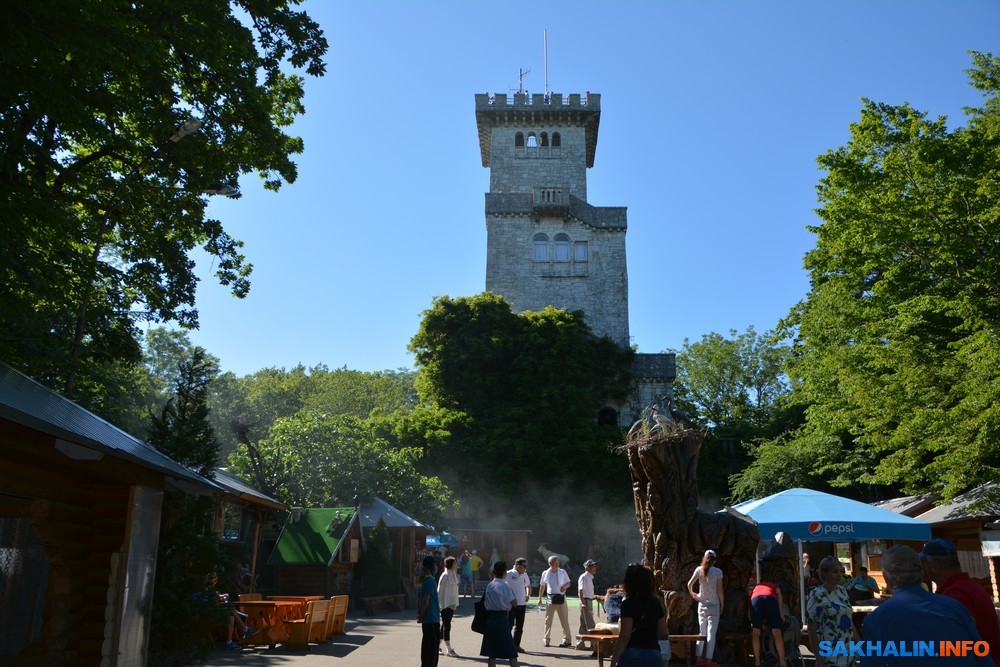 Любопытным туристическим объектом является Ахун-гора (663 м над уровнем моря). От побережья к ней ведет 11-километровое шоссе. На горе имеется смотровая башня, построенная в 1935-36 годах по проекту архитектора С.И.Воробьева. Высота башни 30,5 метра. Этот памятник архитектуры федерального значения возведён из тёсаного известняка в романском стиле (строилась 10 месяцев). С башни открывается вид на Главный Кавказский хребет и черноморское побережье. При подъеме на смотровую башню я насчитал 200 ступеней.