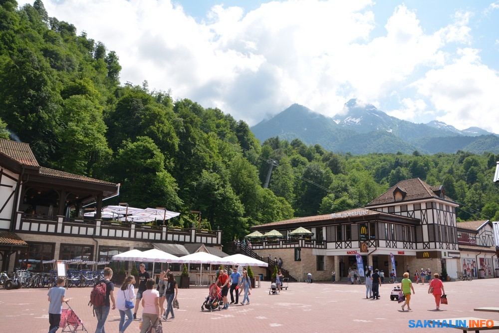 Близко друг к другу разместились гостиницы, рестораны, магазины, прокаты спортивного снаряжения, спортивные и детские площадки, паркинги и станции канатных дорог.