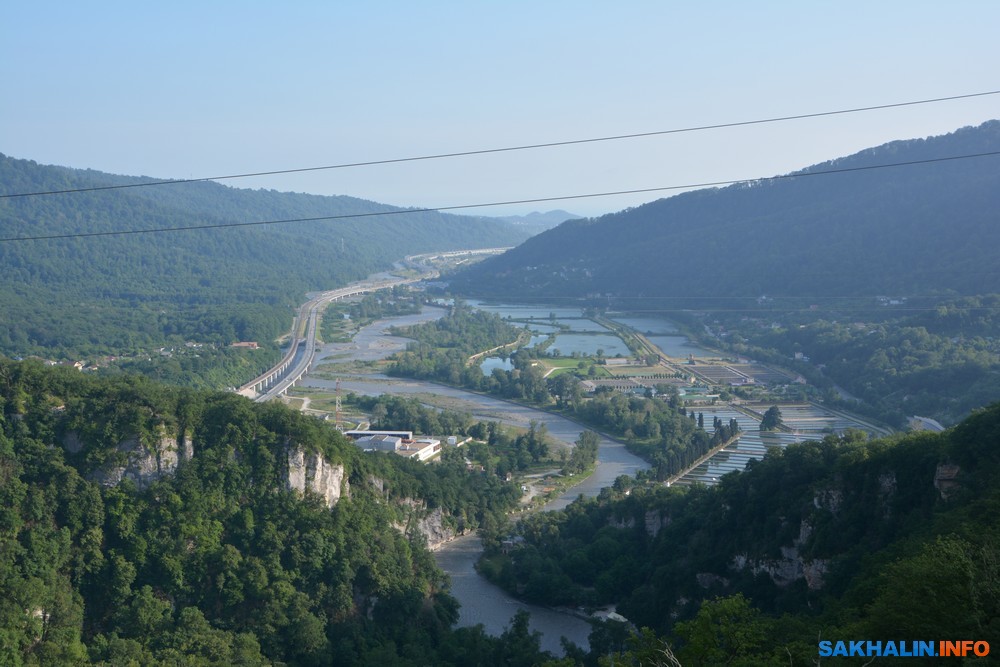 Конечно, приехав сюда вновь, я не мог не посетить современное олимпийское село "Красная поляна". Сегодня это часть Сочи. С побережья сюда можно приехать электропоездом или автомобилем, взятым на прокат. Часть пути проходит по тоннелям. Справа и слева от современной автотрассы форелевые хозяйства.