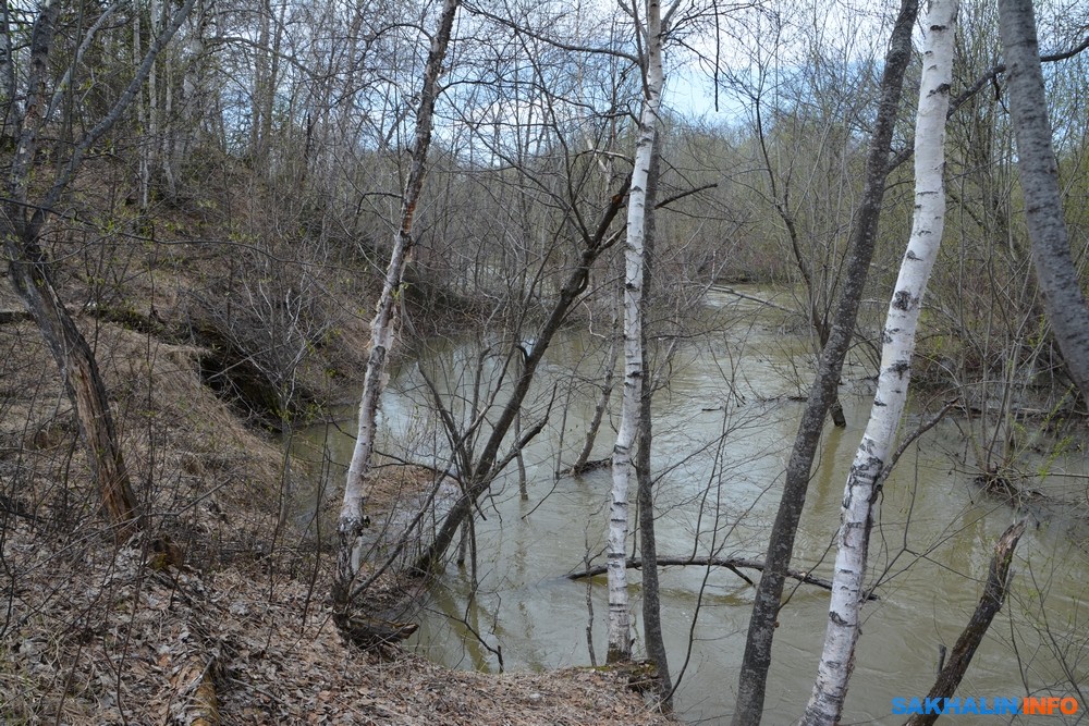 Выбираемся к Тыми. В сопках тает снег. Горная вода разлилась широко...