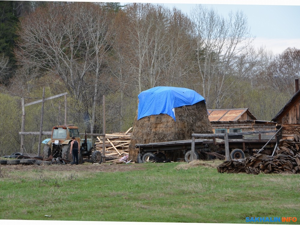 — На зиму дров много надо. Если хата холодная, как у меня, 5-6 машин нужно. С мэром на днях ругались на рынке в Тымовском. С черемшой приехали, он прогнал нас оттуда. Женщина со мною — мужа похоронила, салаты продавала, рыбу — её тоже прогнали. Стояли, продавали — жить как-то надо. В хлебном магазине погреешься и опять на улицу, пока полиция не увидит. Сын просеку в том году ходил чистить по найму, чтобы ветки на провода не падали, денег не заплатили. Такое село было. Еще лет десять назад поля были, кладбище свое.