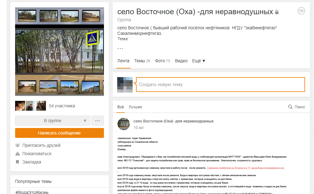 — У нас водяные трубы ржавые с водокачки, река не чистится. Вода летом и зимой нормальная, а осенью и весной была мутная, цвела. Вкладываться в водокачку и линию никто не собирался — построена советской властью, так не хай стоит и работает. МУП ЖКХ ни копейки не вложило за 28 лет. Ничего, — всплескивает руками активистка. — При этом, до июня 2017 года брали за куб воды 52 рубля. Это много, очень много. Все считают, что мы платим, ну и платим, но это неправильно. Мы же нанимаем рабочих, платим им, и должен быть результат, должна быть ответственность. А тут, получается, что к нам относятся, как к быдлу, что ли, извините за выражение, как к пыли под ногами какой-то.