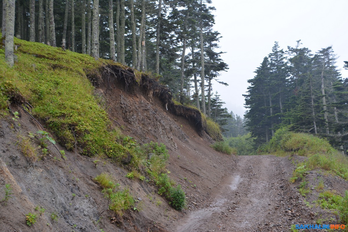 В топких местах видны настилы из стволов деревьев. Подобная культура строительства дорог восходит к началу русской колонизации острова. Так же строилась известная "колесуха" на Дальнем Востоке.