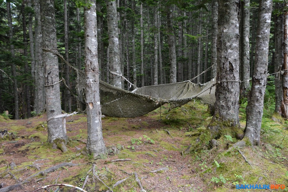 Ржавая кабина лесовоза, куски механизмов и стальных тросов, видавший виды гамак между елей с кучей мусора неподалеку…