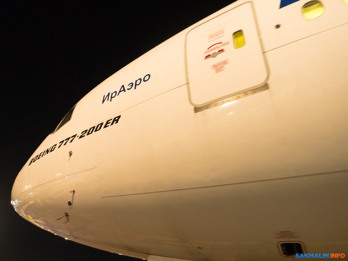 "ИрАэро" в прошлом году перед Новым годом запустило пробный рейс в Южно-Сахалинск. Но тогда компания обеспечить максимальную загрузку "Боинга 777" и поставила на рейс "Суперджет" с двумя пересадками. На три летних рейса поставлен честный Boeing 777-200ER. Я "двухсоткой" не летал со времен "Трансаэро". Вылет из Домодедово.