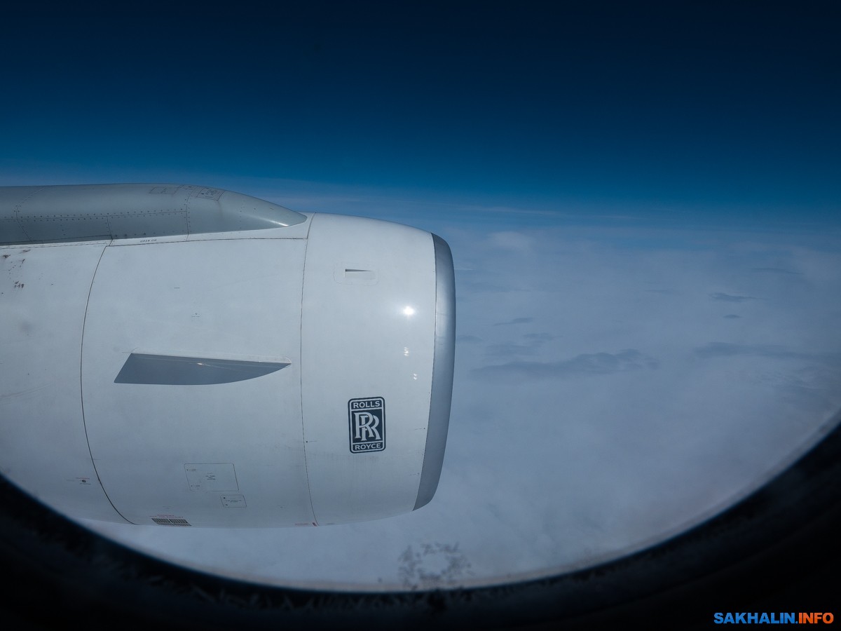 Т.к. направление необычное, КВС в приветствии чуть запнулся — "рейс из Домодедово в эээ Южно-Сахалинск". Зато изящно извинился, назвав причинами задержки "сбойную ситуацию в аэропорту Домодедово и позднее прибытие нашего замечательного лайнера".