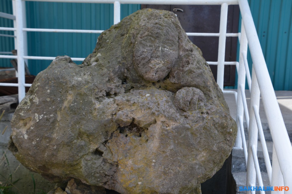 Впервые загадочную "личину", вырубленную в камне, я увидел в 2006 году у входа в прежнее, старое помещение Южно-Курильске муниципального краеведческого музея. Музей был закрыт по техническим причинам, и узнать какую-либо информацию о заинтересовавшем меня предмете было невозможно.