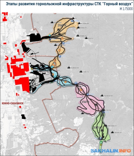 В последние недели в новостях периодически всплывают две темы: над Южно-Сахалинском и скандальный проект "", предусматривающий снос остатков леса между городом и горой Большевик ради строительства там 400 коттеджей. Не надо быть специалистом, чтобы понимать, что в случае реализации "Ривьеры" проблема смога усугубится. Но насколько сильно — понимают немногие, поскольку мало кто знает истинные масштабы планируемых вырубок и раскорчёвок. На самом же деле "Горная ривьера" — лишь макушка айсберга. Чтобы понять это, давайте взглянем на некоторые карты с официального инвестиционного портала Сахалинской области. Но сначала небольшая справка, необходимая для понимания статуса этого сайта. Согласно ответу вице-мэра Южно-Сахалинска А. Гринберга от 18 декабря 2019 года №06714, эта корпорация (точнее, УК АО КРДВ, дочернее зависимое общество которой называется ООО "УК "ТОР "Сахалин") осуществляет функции управления ТОР "Горный воздух". На неё возложена организация и сопровождение ведущейся там деятельности, в том числе рассмотрение заявок потенциальных инвесторов на получение статуса резидентов ТОР, обеспечение строительства инфраструктуры ТОР, предоставление земельных участков для проектов резидентов ТОР и оказание поддержки резидентам в ходе реализации проектов. То есть фактически эта корпорация и её дочернее ООО и есть истинные органы государственной власти на всей той территории, которая начинается восточнее края городской застройки. Как такая квазигосударственная структура соотносится с дышащей на ладан Конституцией — это пусть ломают головы юристы. Для нас главное то, что эта корпорация или даже её ООО — и есть на данной территории царь, бог и воинский начальник. Соответственно, сайт повествует о том, что истинные властители этой земли для нас уготовили. А уготовили они, помимо "Горной ривьеры" (которая на их сайте именуется "Сахалинской ривьерой"), вот какие новшества.